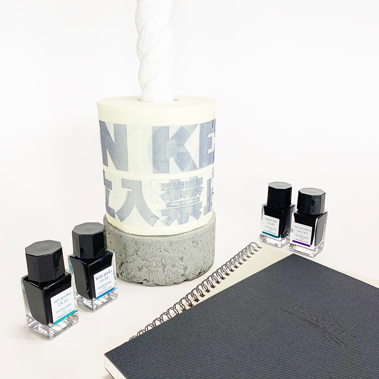 セメント製の卓上トイレットペーパーホルダー・オブジェです。セレクトショップからのオーダー商品ですがNO DESIGN, DESIGN STOREで販売開始します。白い綱が不思議な空気を出してますね、柔らかくも見えてしっかり自立もします。食卓にリビング、書斎などトイレットペーパー単体では置きにくい、そんな時このホルダーにのせればトイレットペーパーも立派なオブジェに変身、アクセントになりますね。セメント底裏には滑止め・傷防止のため黒色の塩化ビニールが貼り付けてあります。※作家モノ・ハンドメイド商品のため、個体差、多少の汚れ、傷等がみられる場合があります、ご理解の程よろしくお願いします。